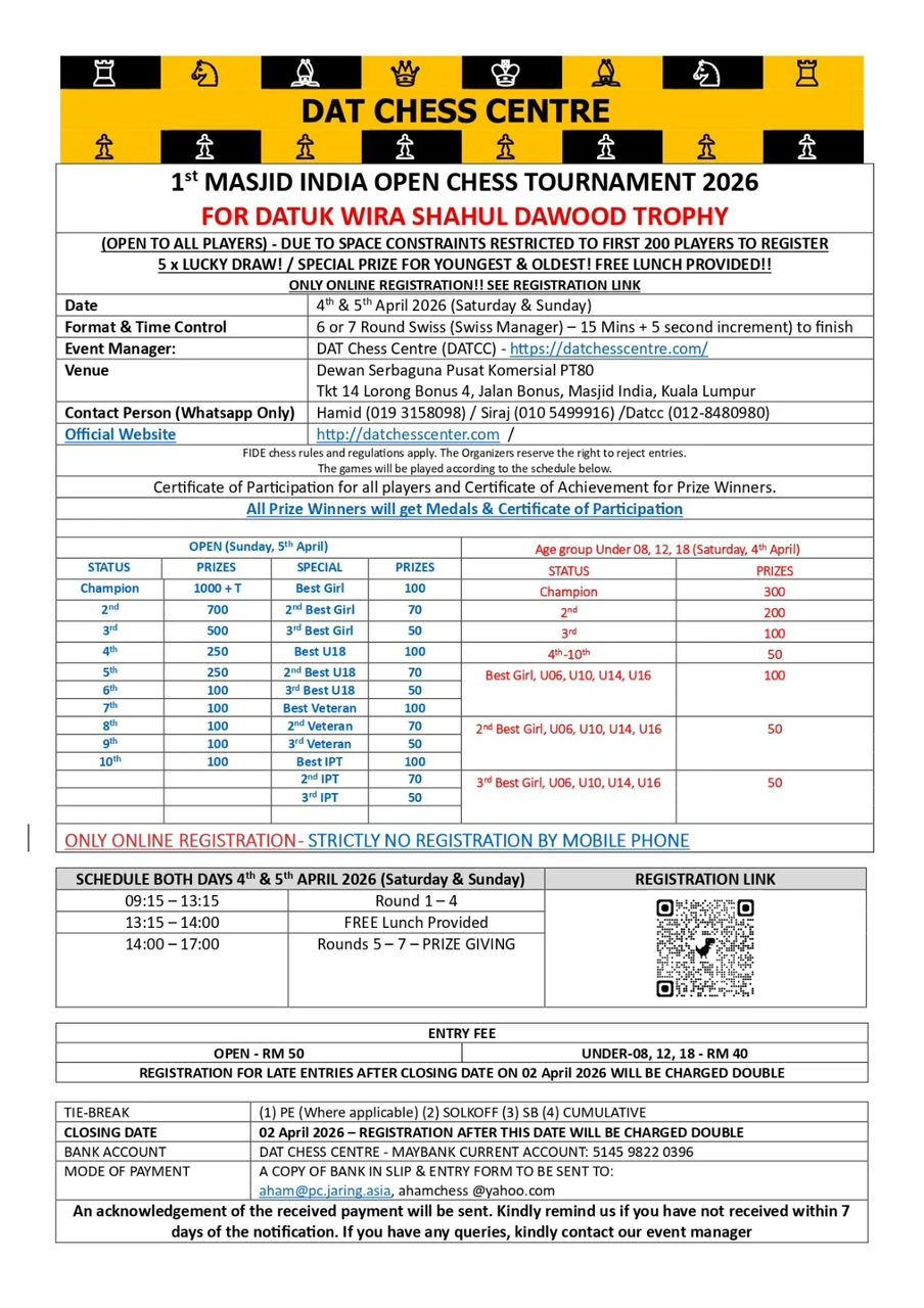 Daftar sebagai ahli tahunan & sertai kejohanan anjuran Chessaurus secara PERCUMA!