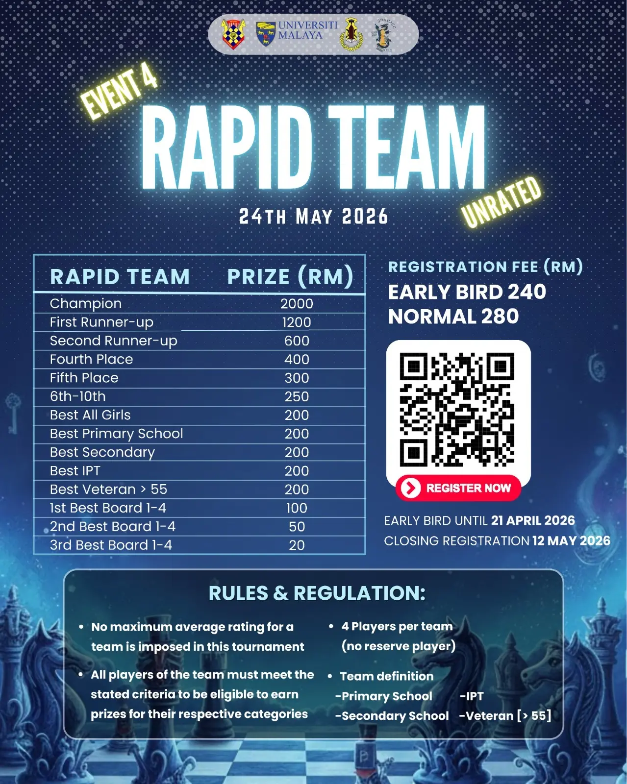 Daftar sebagai ahli tahunan & sertai kejohanan anjuran Chessaurus secara PERCUMA!