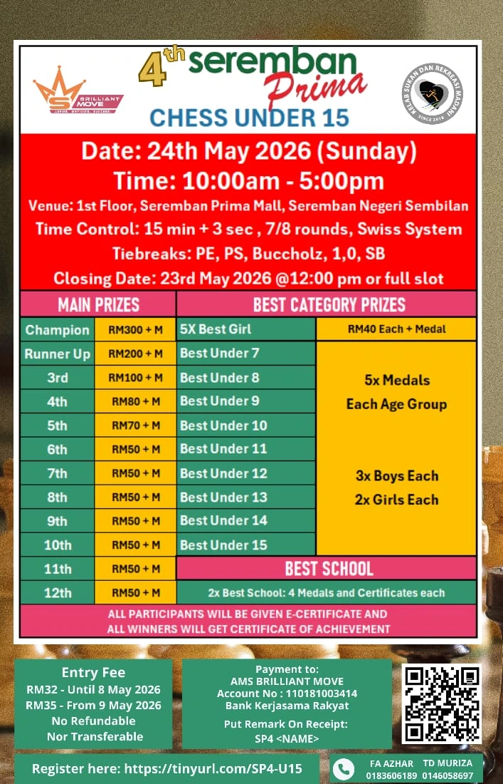 Daftar sebagai ahli tahunan & sertai kejohanan anjuran Chessaurus secara PERCUMA!
