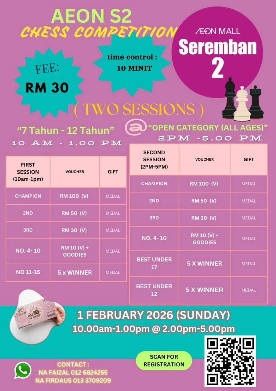 Daftar sebagai ahli tahunan & sertai kejohanan anjuran Chessaurus secara PERCUMA!