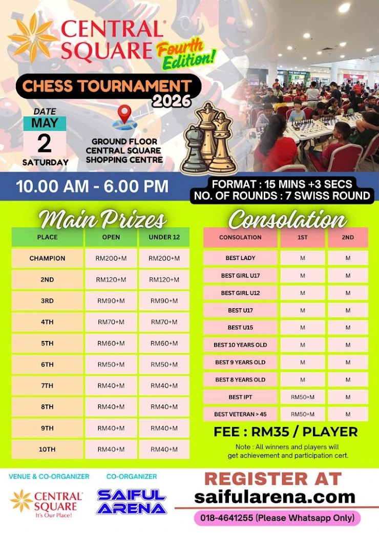 Daftar sebagai ahli tahunan & sertai kejohanan anjuran Chessaurus secara PERCUMA!