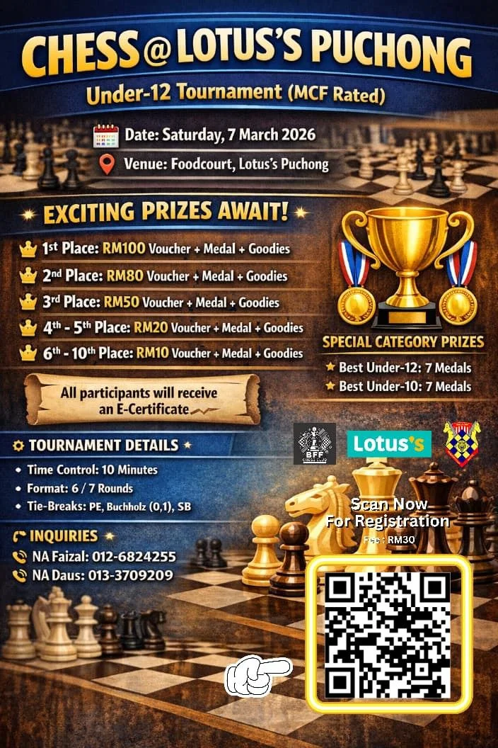 Daftar sebagai ahli tahunan & sertai kejohanan anjuran Chessaurus secara PERCUMA!