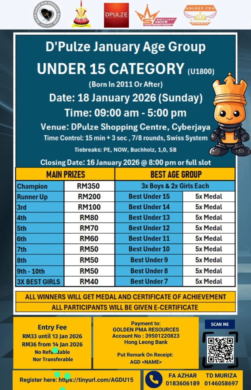 Daftar sebagai ahli tahunan & sertai kejohanan anjuran Chessaurus secara PERCUMA!
