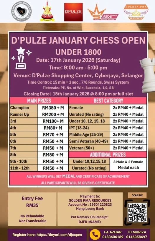 Daftar sebagai ahli tahunan & sertai kejohanan anjuran Chessaurus secara PERCUMA!