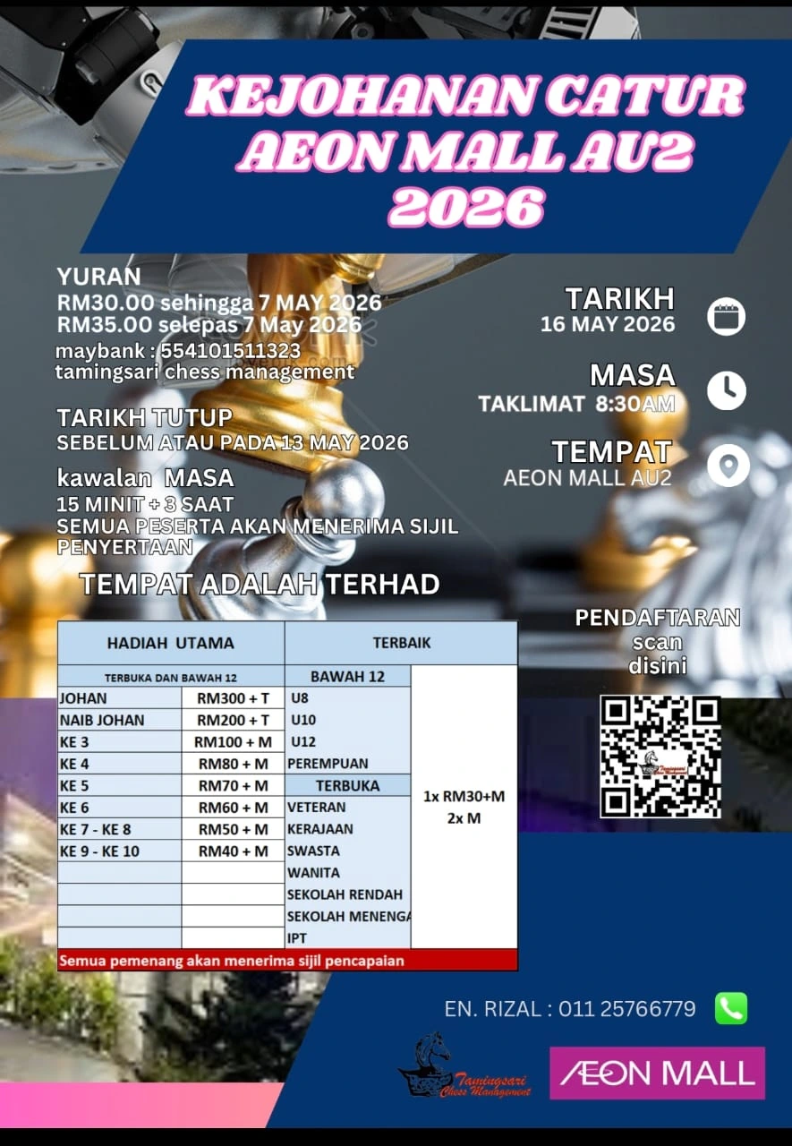 Daftar sebagai ahli tahunan & sertai kejohanan anjuran Chessaurus secara PERCUMA!