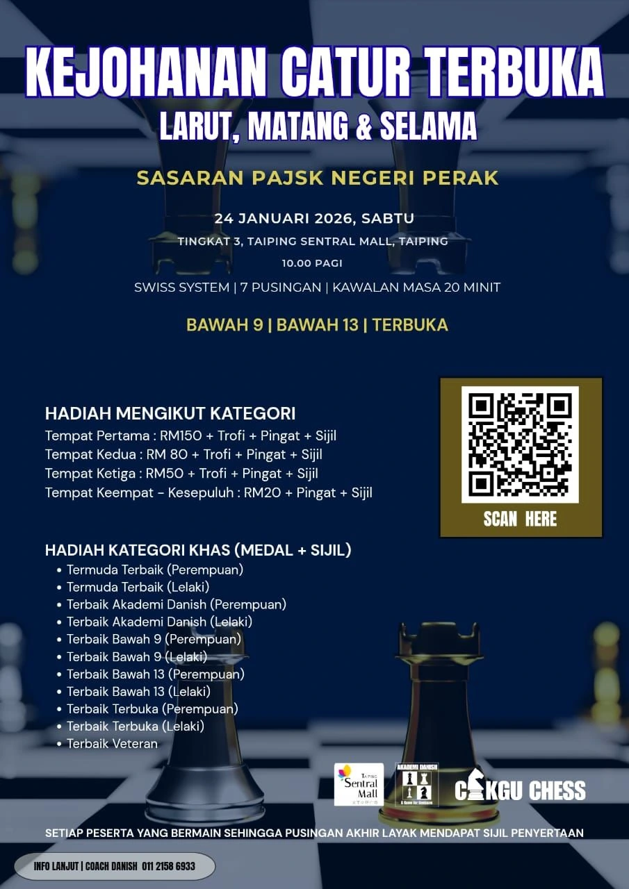 Daftar sebagai ahli tahunan & sertai kejohanan anjuran Chessaurus secara PERCUMA!