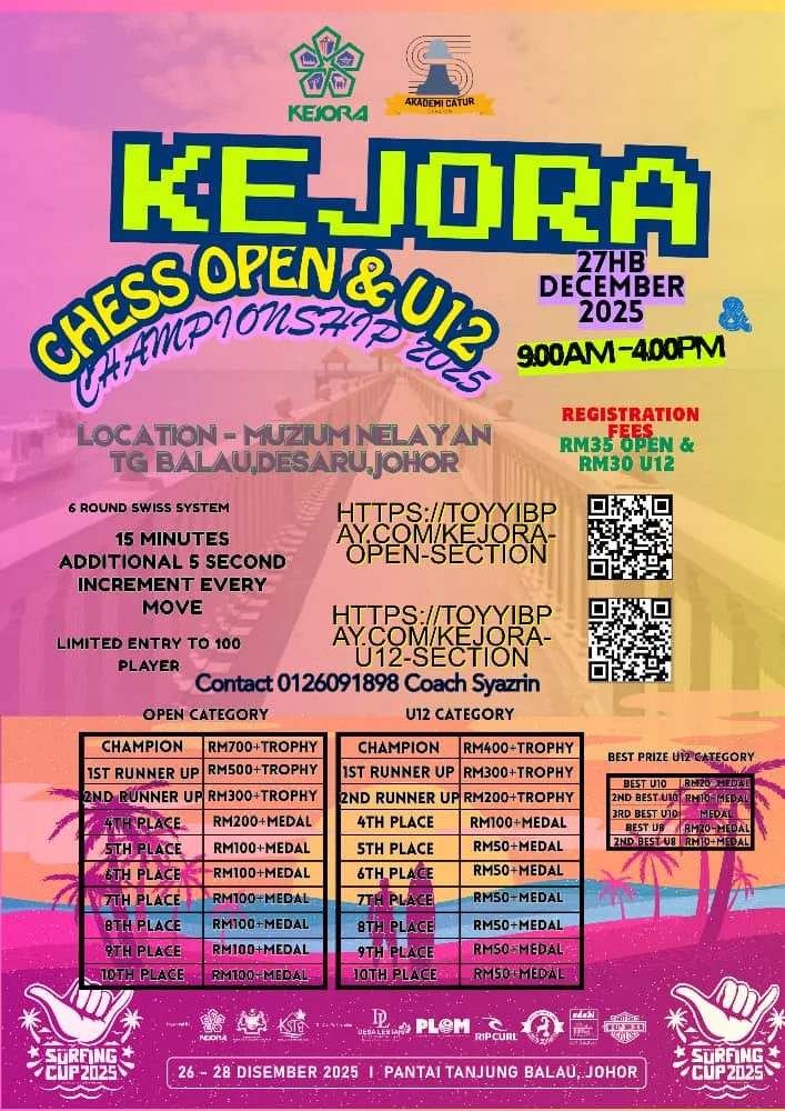 Daftar sebagai ahli tahunan & sertai kejohanan anjuran Chessaurus secara PERCUMA!