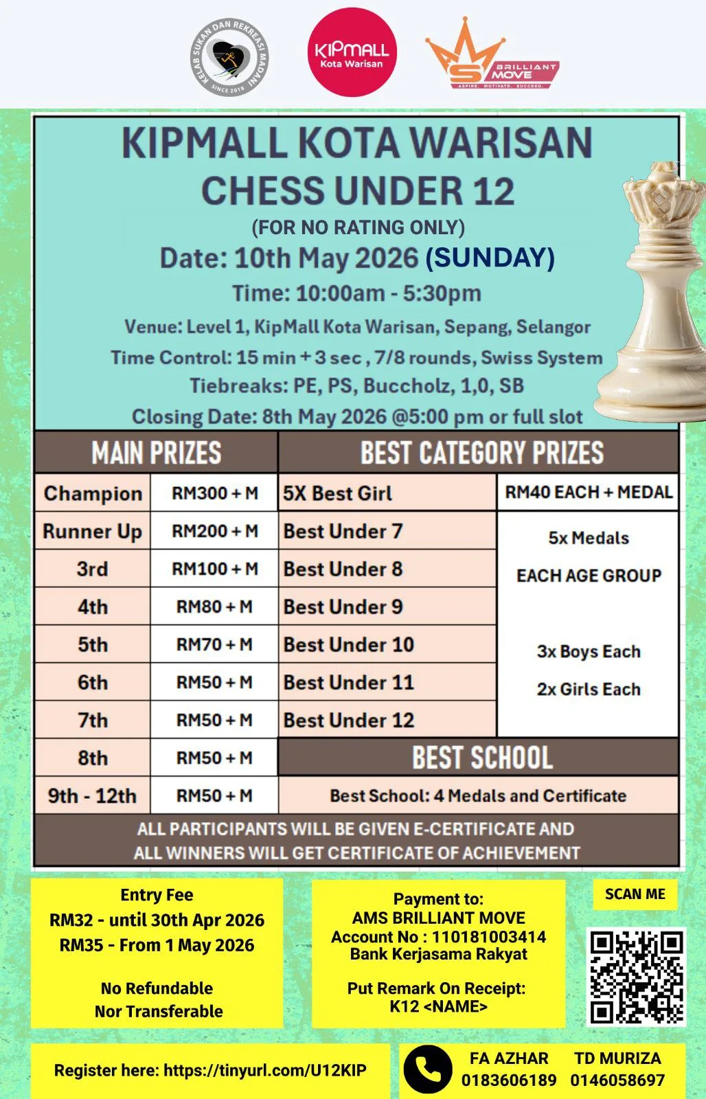 Daftar sebagai ahli tahunan & sertai kejohanan anjuran Chessaurus secara PERCUMA!