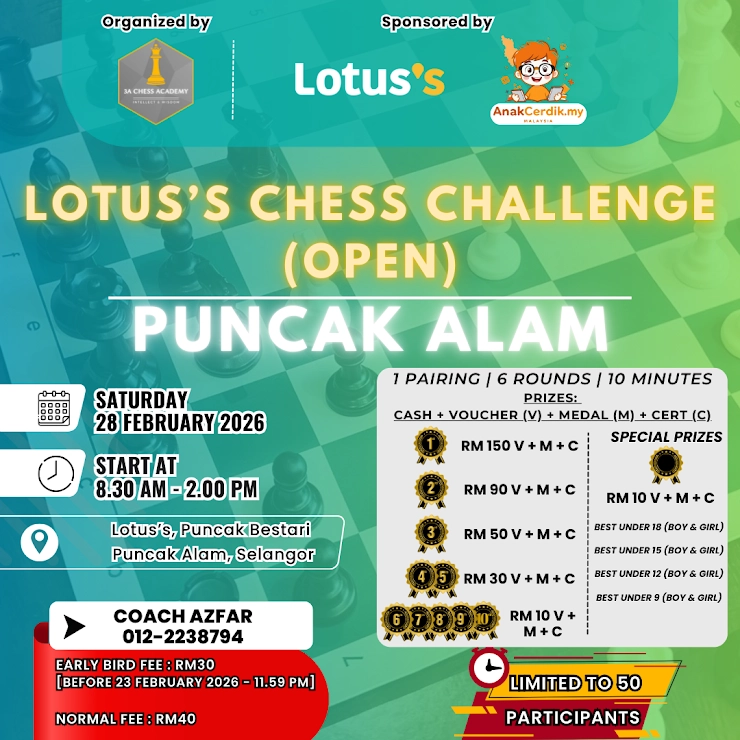 Daftar sebagai ahli tahunan & sertai kejohanan anjuran Chessaurus secara PERCUMA!