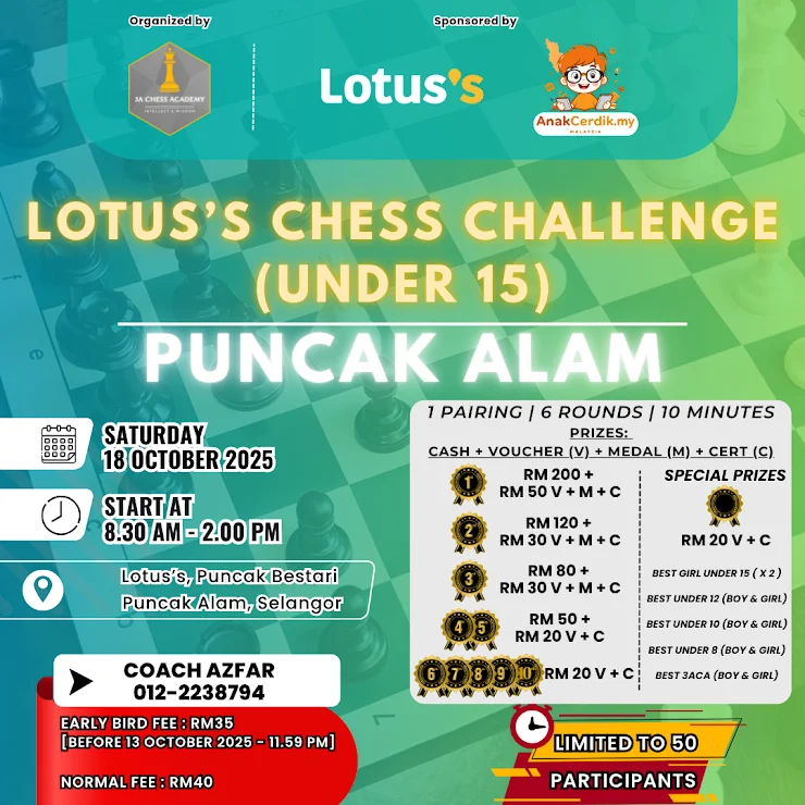 Daftar sebagai ahli tahunan & sertai kejohanan anjuran Chessaurus secara PERCUMA!
