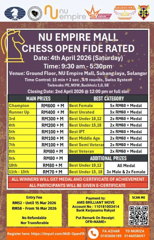 Daftar sebagai ahli tahunan & sertai kejohanan anjuran Chessaurus secara PERCUMA!