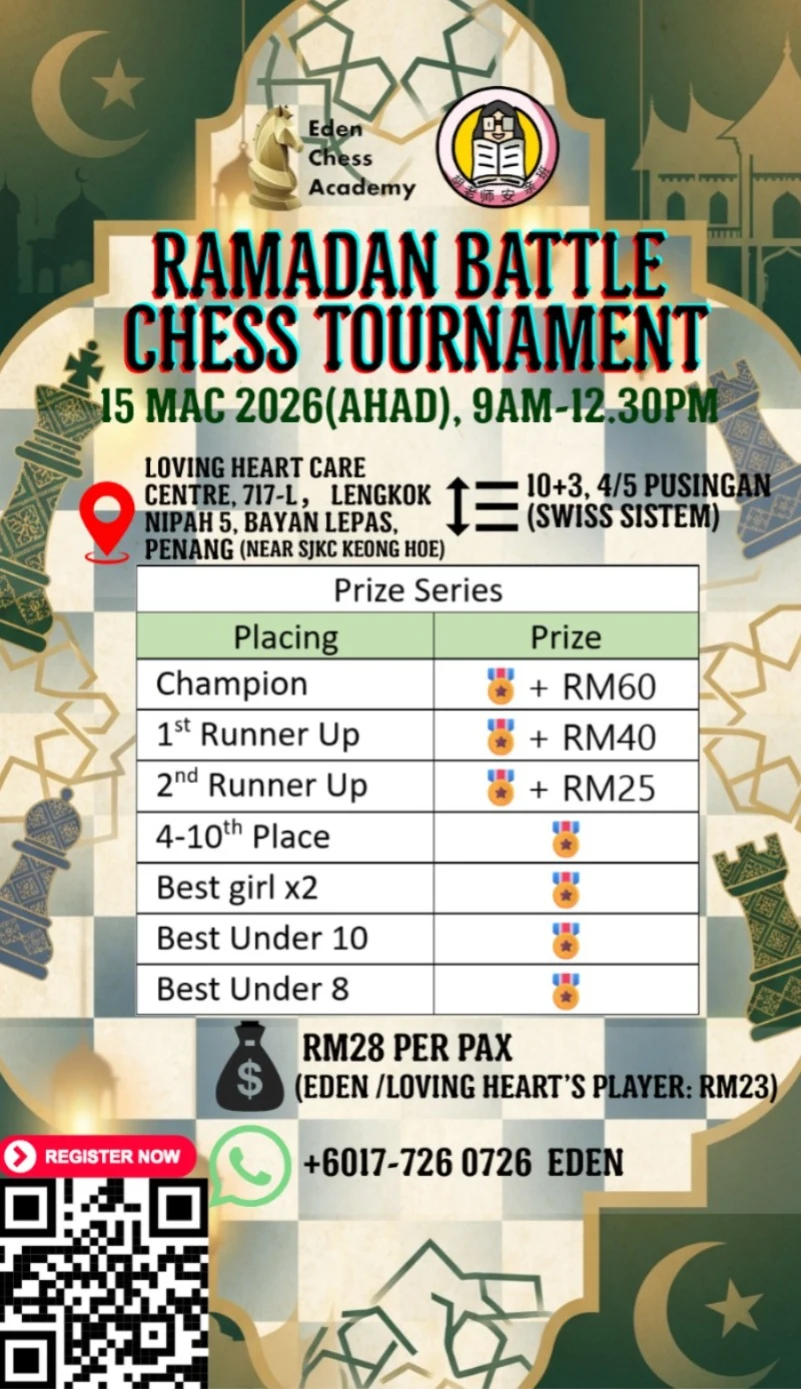 Daftar sebagai ahli tahunan & sertai kejohanan anjuran Chessaurus secara PERCUMA!