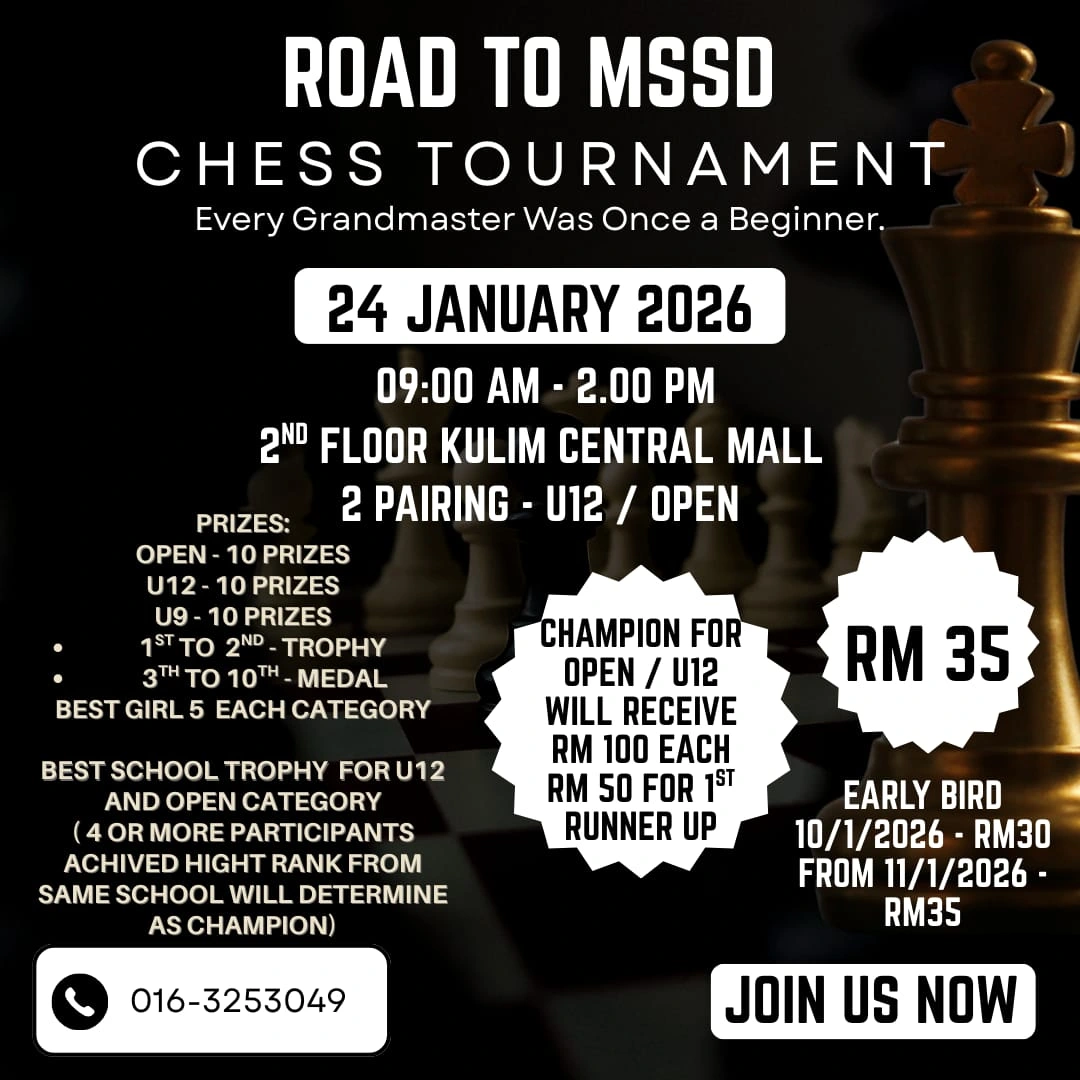 Daftar sebagai ahli tahunan & sertai kejohanan anjuran Chessaurus secara PERCUMA!