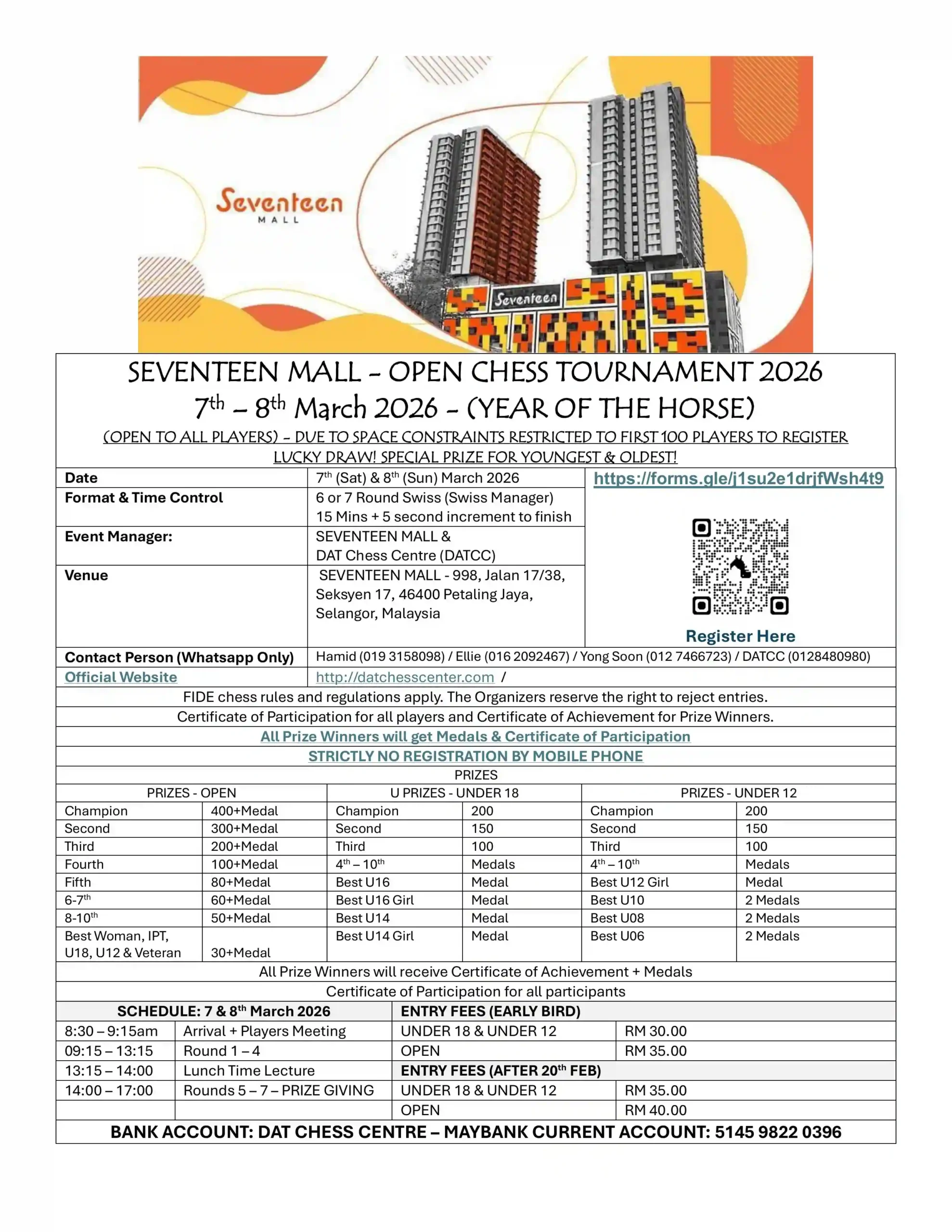 Daftar sebagai ahli tahunan & sertai kejohanan anjuran Chessaurus secara PERCUMA!