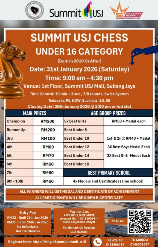 Daftar sebagai ahli tahunan & sertai kejohanan anjuran Chessaurus secara PERCUMA!