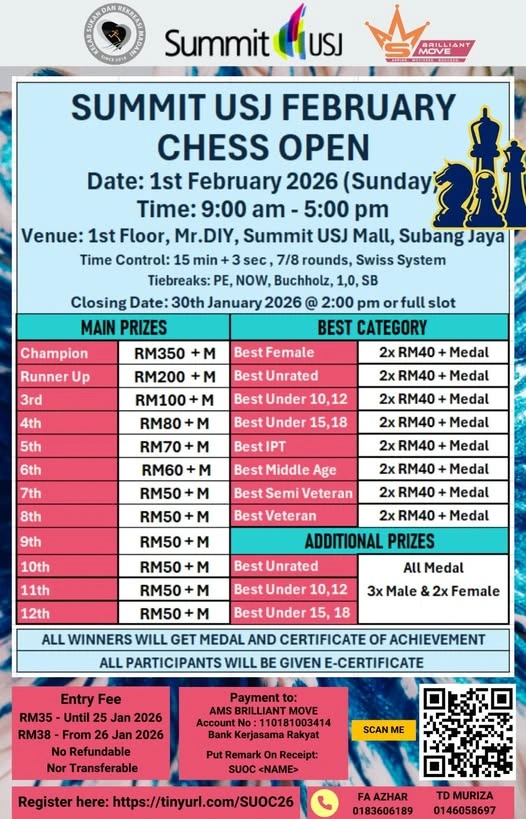 Daftar sebagai ahli tahunan & sertai kejohanan anjuran Chessaurus secara PERCUMA!