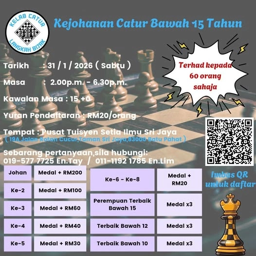 Daftar sebagai ahli tahunan & sertai kejohanan anjuran Chessaurus secara PERCUMA!